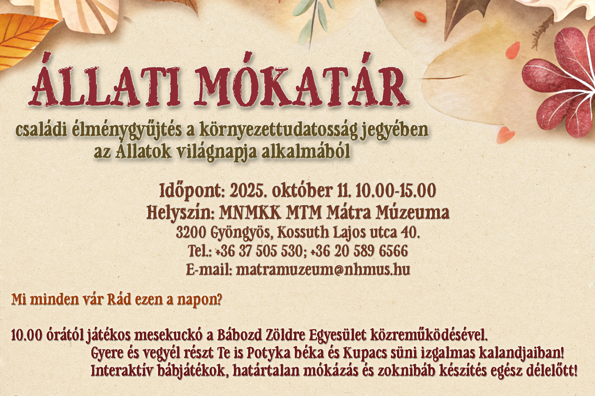 🏡 Helyszín: MNMKK MTM Mátra Múzeuma (3200 Gyöngyös, Kossuth Lajos u. 40.)